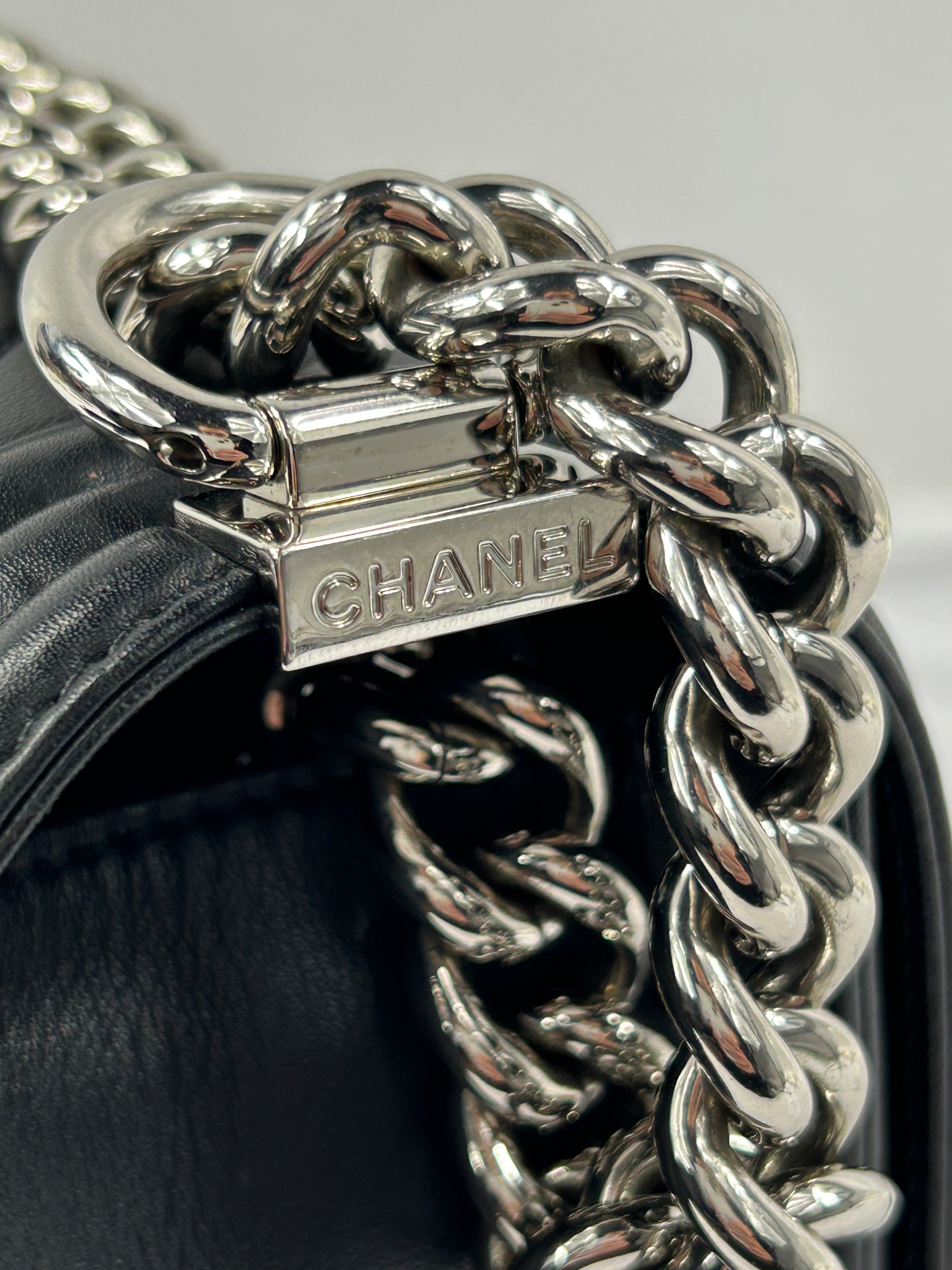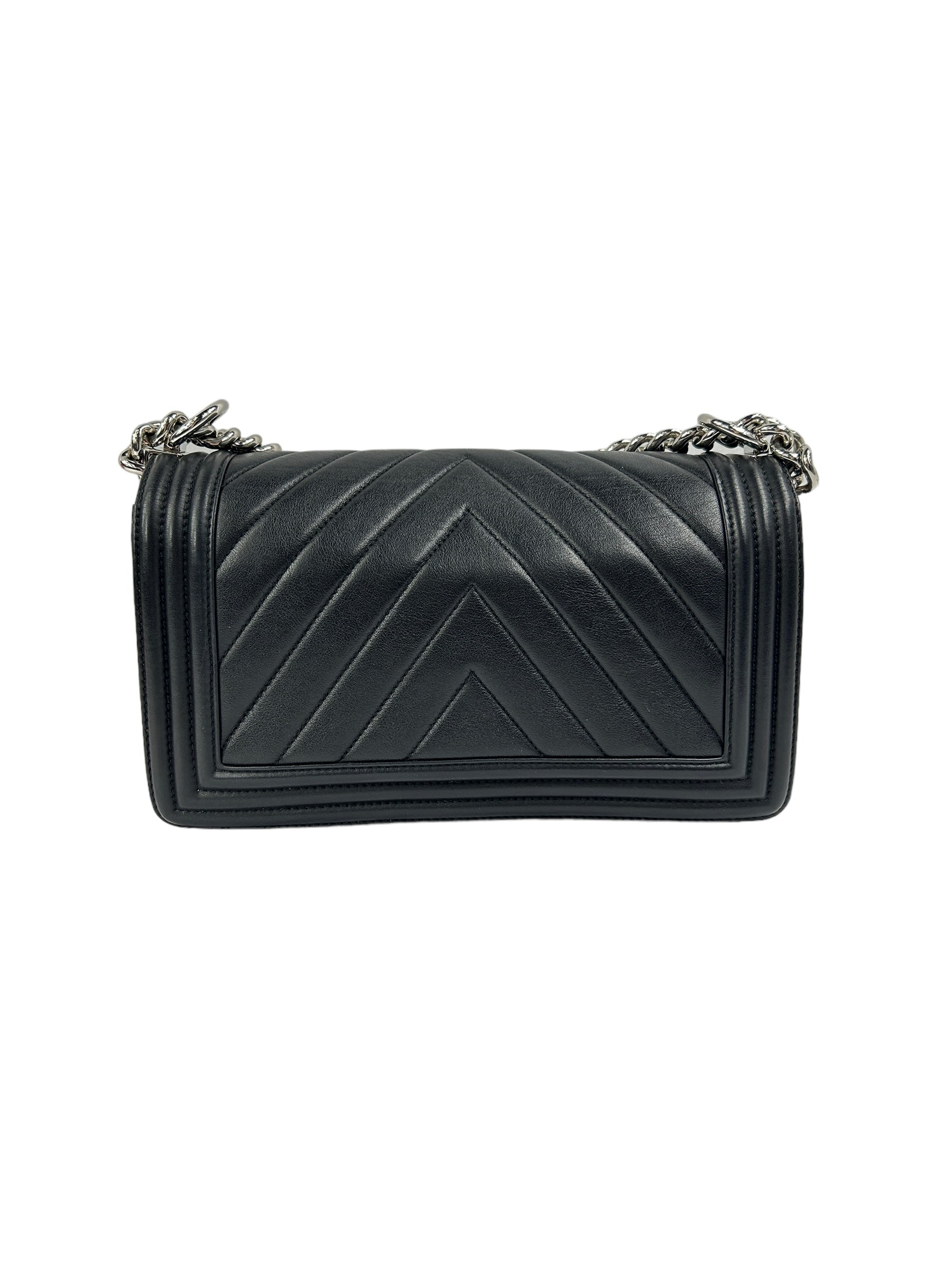 Black Chevron Calfskin Old Medium Boy Bag w/SHW